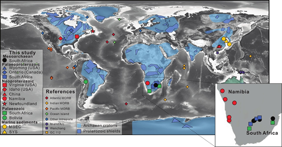 针对以上科学问题,中国科学院广州地球化学研究所于晓晓博士后(现山东科技大学学术教授)与白江昊副研究员,在韦刚健研究员、林莽研究员、以及美国加利福尼亚大学圣芭芭拉分校Roberta L. Rudnick院士指导下,创新性利用Nu 1700 MC-ICPMS对全球太古代以来的冰碛岩和现代边缘海沉积物样品(图1)开展高精度“叁Nd”同位素(143Nd/144Nd和146Nd/144Nd)组成分析,确定了大陆上地壳的稳定Nd同位素组成。